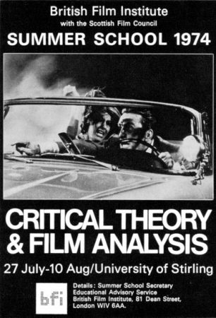 An aspiration to a different kind of learning was expressed in the organisation of the BFI summer schools. There were big plenary events – I remember the curved cinema auditorium at Stirling University full of students and staff clutching a stencilled copy of Christian Metz’s ‘Grand Syntagmatique’ and trying, as a huge group, to apply its terms to chosen extracts (see Fig. 3). But generally we were broken into seminar groups in smaller rooms in which we sat in a square, facing each other, with books, papers and cans of Irn-bru on the tables in front.[4] (see Fig. 4) Two tutors sat with us in the group and the discussions were sometimes lively, sometimes puzzled, sometimes despairing but nearly always fruitful. My essay in the National Fictions dossier, which arose out of the 1983 Summer School, was more or less written in that seminar room and much of my later teaching on British cinema and television was inspired by the BFI summer schools. (see Fig. 5).