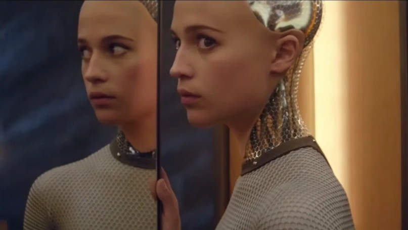 Perhaps this is not altogether different from the first script Garland wrote for himself to direct. A young programmer (Caleb) is brought to the isolated home of the CEO (Nathan) of the tech company he works for so as to run tests on a humanoid robot named Ava. Unbeknownst to Caleb, he is in fact the test subject: will he develop deep feelings for Ava, who has a clearly robotic body with some attractive female/feminine features? Nathan orchestrates all this, but eventually loses control when Caleb, who has indeed developed feelings for Ava, sets ‘her’ free and ‘she’ then kills Nathan and escapes from his home, leaving Caleb locked in (presumably to die a miserable death). Hiding their robotic features, Ava joins the world of humans.