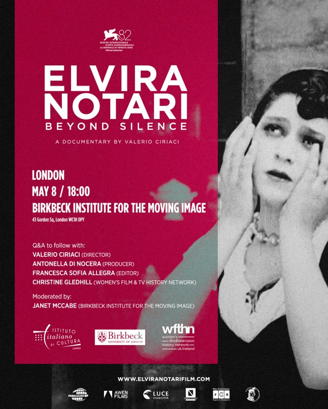 Birkbeck Institute of the Moving Image: Friday 8 May, 6–8.30pm, followed by a Q&A with director Valerio Ciriaci, producer Antonella Di Nocera, and editor Francesca Sofia Allegra. Book here: https://www.bbk.ac.uk/events/event/61553/elvira-notari-beyond-the-silence