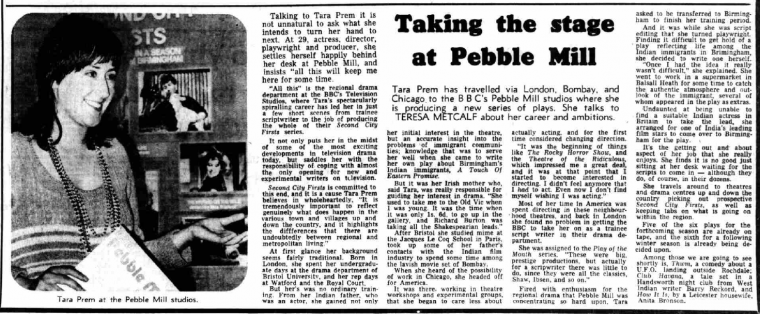 As representation become ever more important in the world of filmmaking and broadcast television, among the pioneers of Asian representation in the BBC is Tara Prem. This 2013 blog post by Dr Liarou explores Tara Prem’s role in the advancement of British multicultural television. Dr Liarou covers Tara’s Prem’s professional life, from small to large scale production companies. Tara Prem is of Indian and Irish descent and wrote the first drama to air on the BBC with an all Asian cast.In 2015, Tara Prem was presented with an award for Outstanding Contribution to Media by the Asian Media Awards.